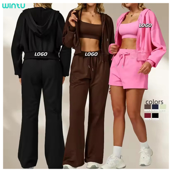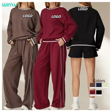 Wintu Sweatshirt wanita nyaman, setelan joging, Pullover longgar, lengan panjang, Solid, kaki lurus, celana pendek kaki lebar, untuk Kasual