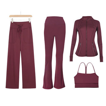 Setelan rompi ramping empat potong wanita, celana elastis bentuk Y, celana lurus gaya Vintage, celana ketat bersirkulasi